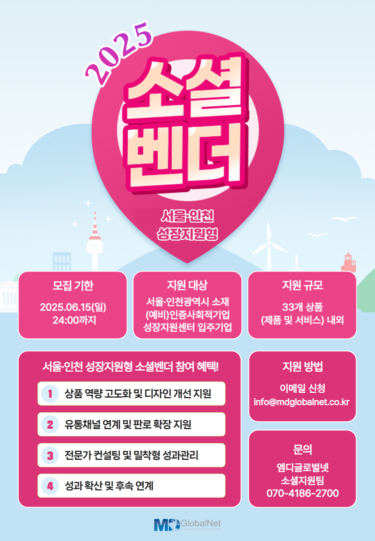 『2025년 소셜 벤더 운영 사업(성장 지원형-서울·인천권역)』을 운영하는 엠디글로벌넷입니다.