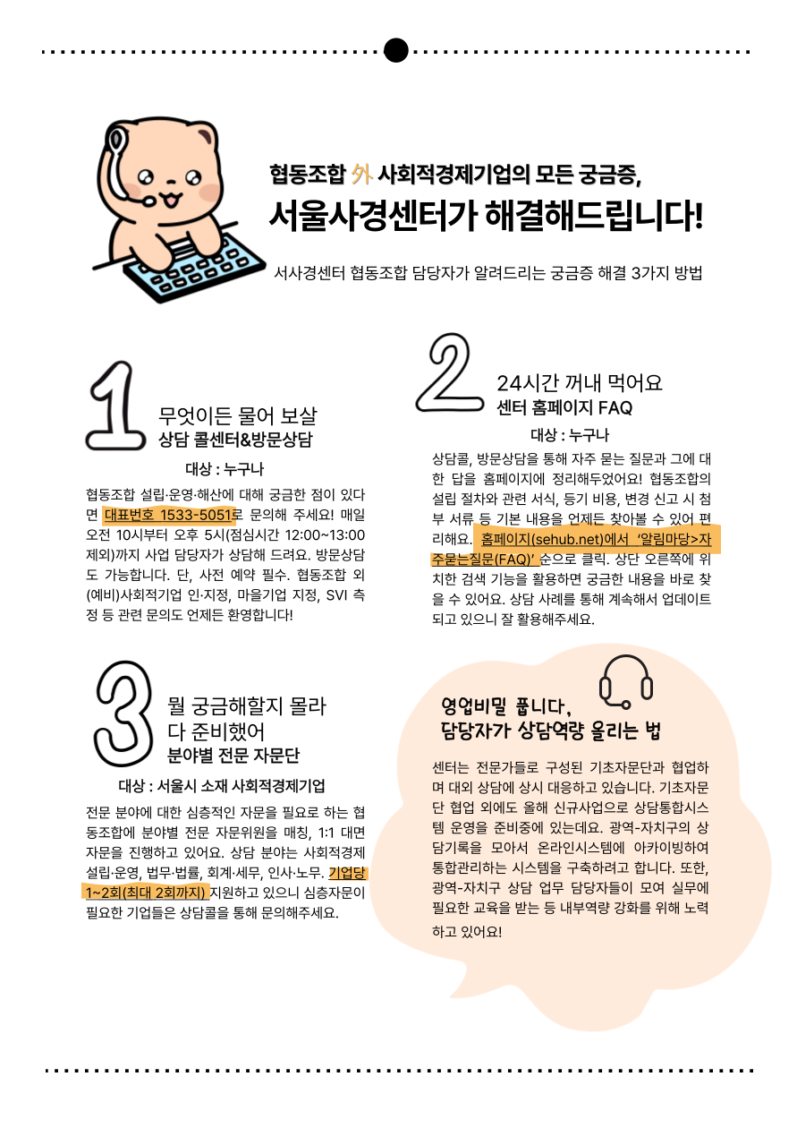 사회적경제 모든 궁금증, 서울사경센터가 해결해드립니다