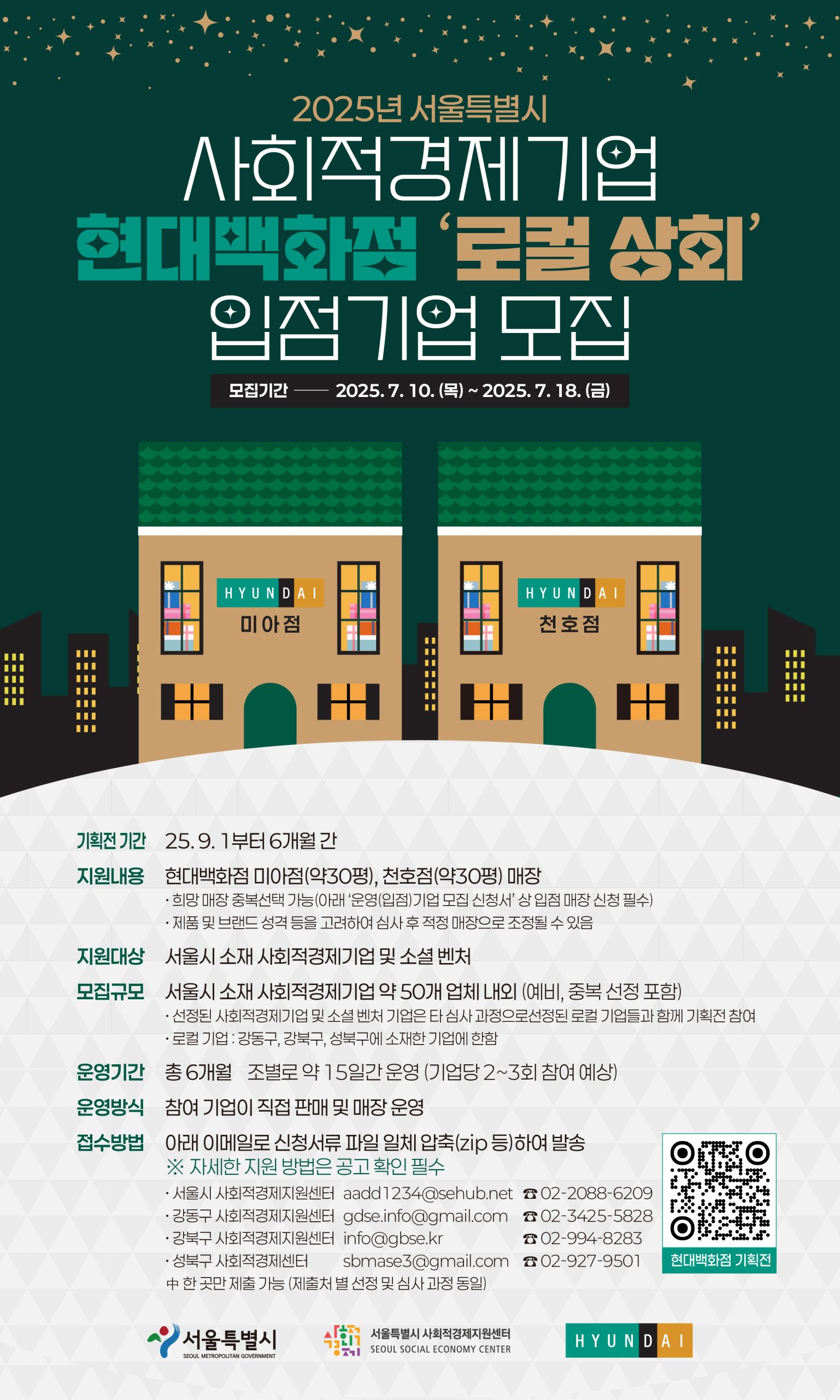 ❍ 공 고 명 : 2025년 서울특별시 사회적경제기업 현대백화점 ‘로컬 상회’ 운영(입점)기업 모집