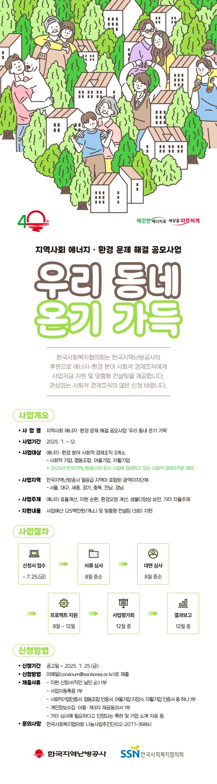 1) 사업명: 2025년 지역사회 에너지·환경 문제 해결 공모사업‘우리 동네 온기 가득’