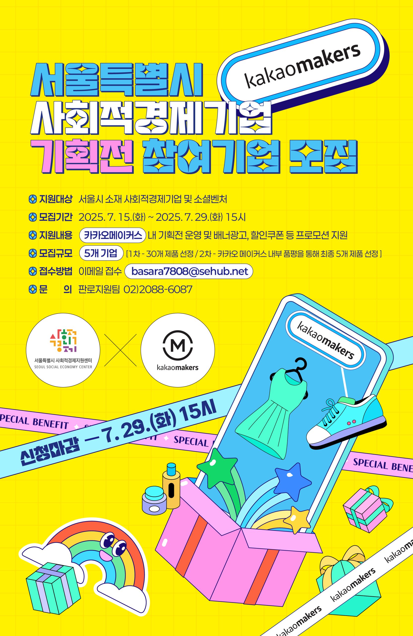 □ 공 고 명: 서울특별시 사회적경제기업×kakaomakers 기획전 참여기업 모집