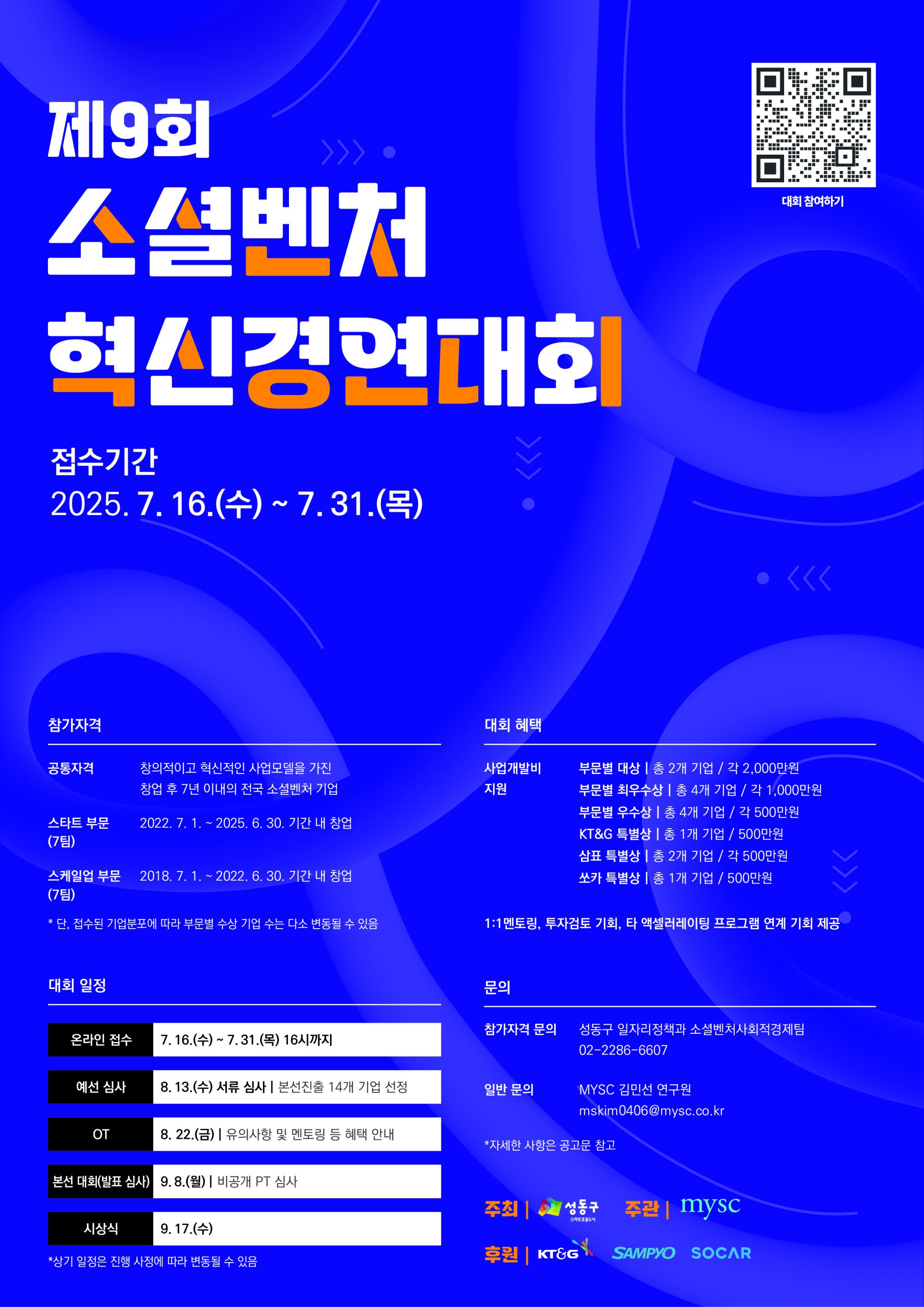 – 참가자격 문의 : 성동구 일자리정책과 소셜벤처사회적경제팀 (02-2286-6607)