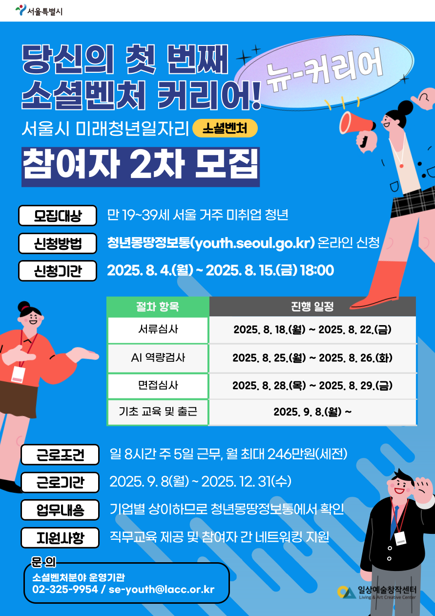 2025년 서울시 미래청년일자리사업(소셜벤처분야)에 참여할 청년을 모집합니다!
