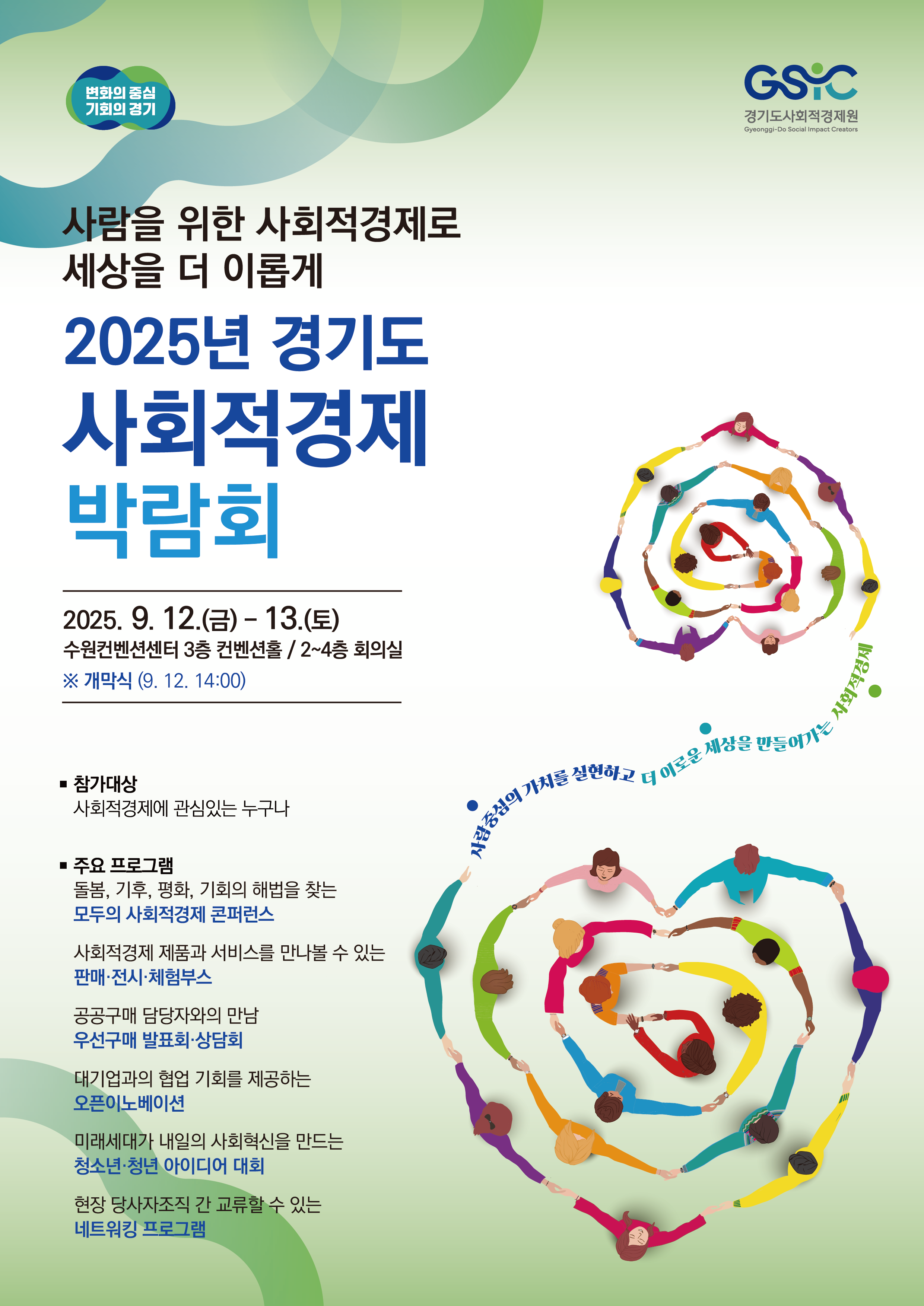 경기도와 경기도사회적경제원은 오는 2025년 9월 12일(금)~13일(토) 양일 간 수원컨벤션센터에서