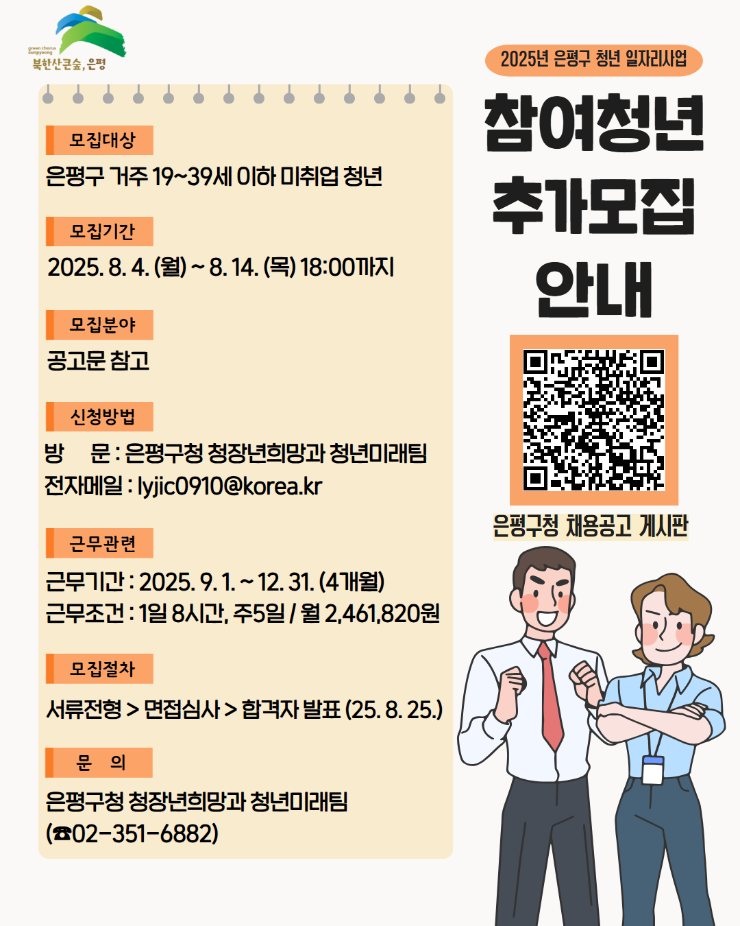 2025년 은평구 청년 일자리사업 참여청년 추가 모집 공고