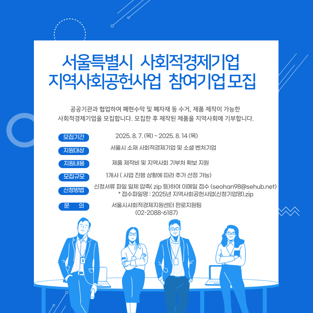 [공고] 서울특별시 사회적경제기업 지역사회공헌사업 참여기업 모집( ~8. 14. (목))