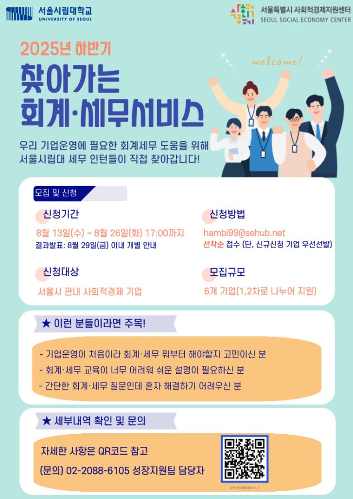 [2025년 하반기] 사회적경제 ‘찾아가는 회계세무 서비스’ 참여기업 모집