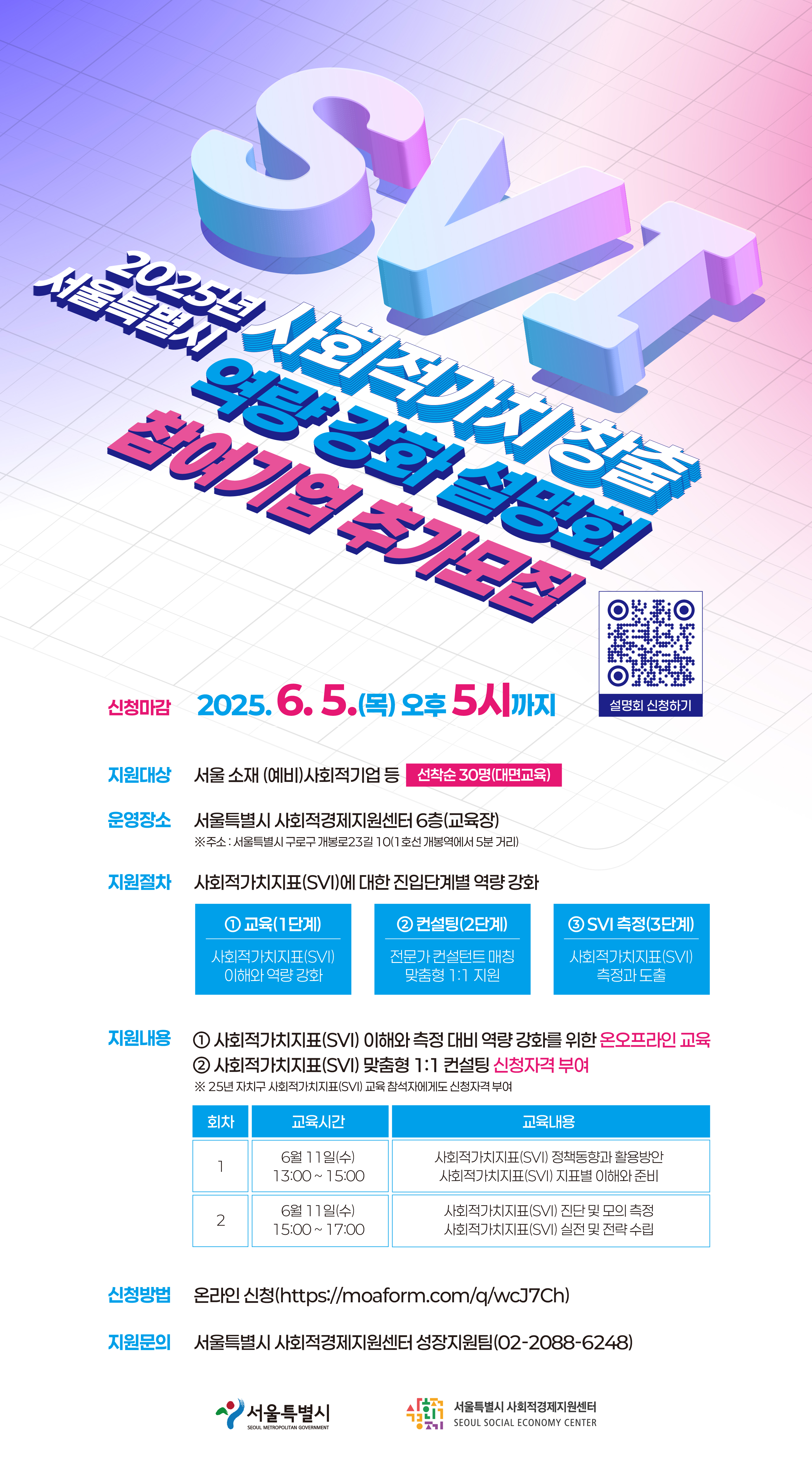 다. 신청문의: 서울특별시 사회적경제지원센터 성장지원팀(02-2088-6248)