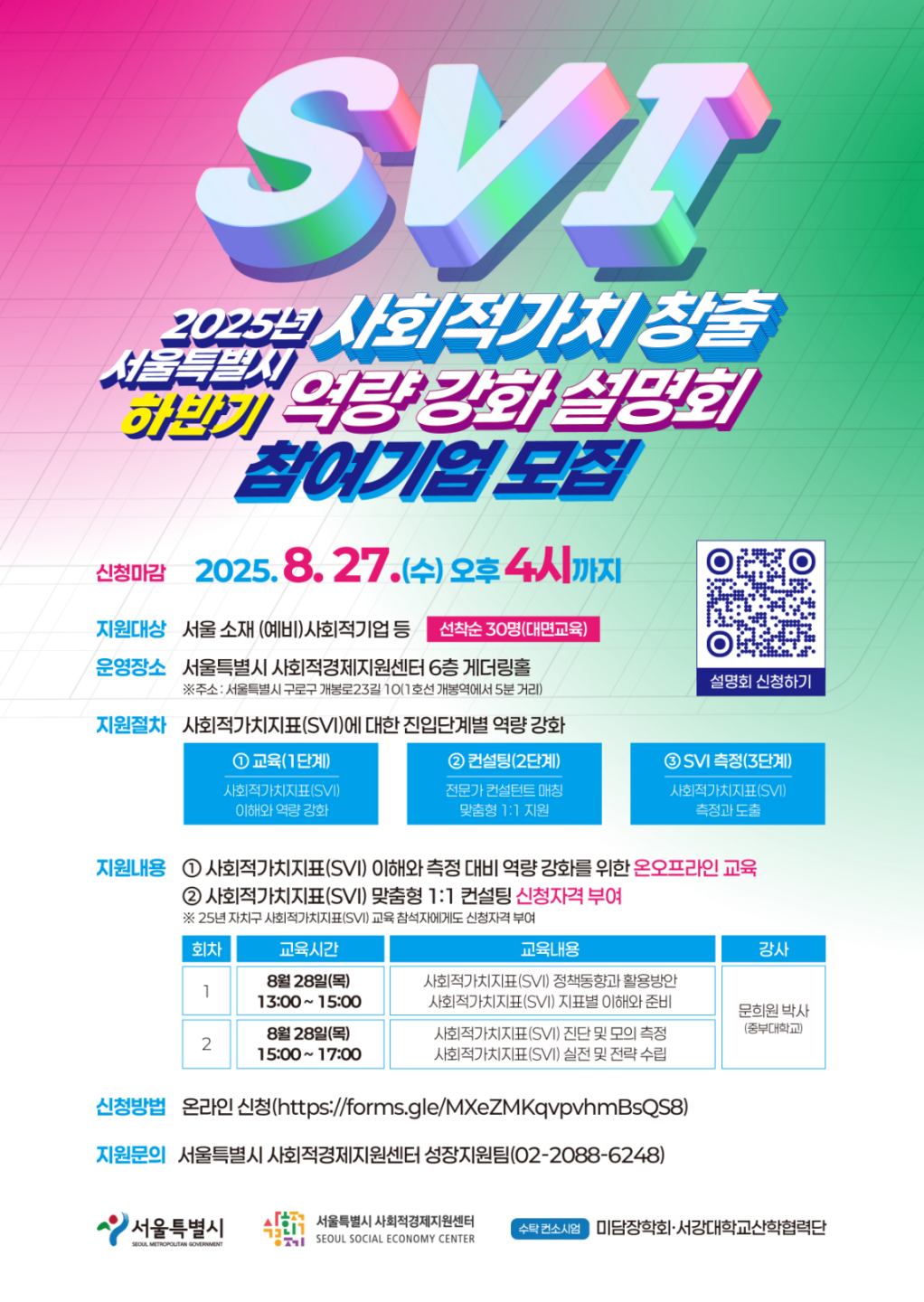 2025년 하반기 사회적가치 창출 역량 강화 설명회 참여기업 모집