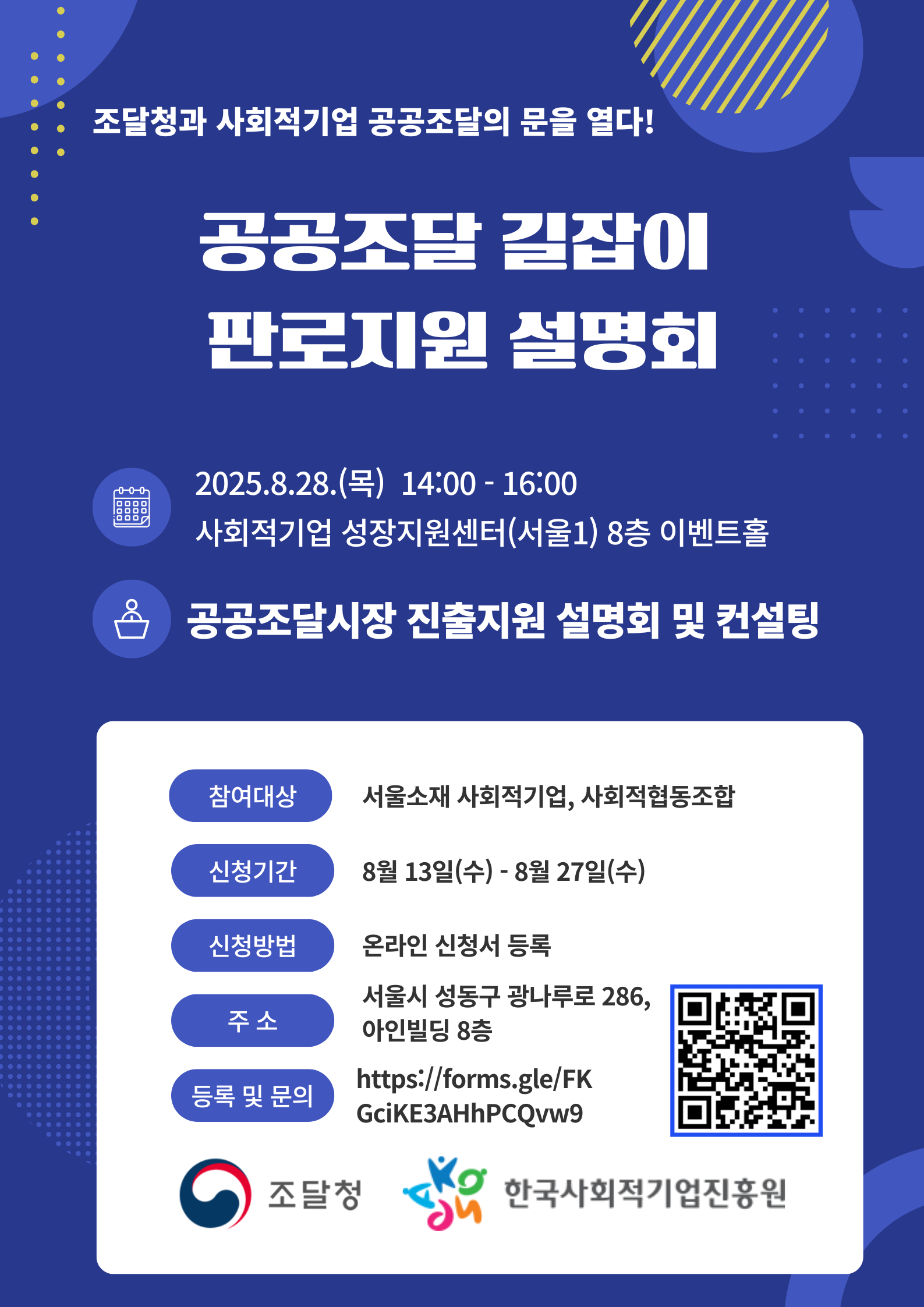 『 공공조달 길잡이 판로지원 설명회 』 참여기업 모집