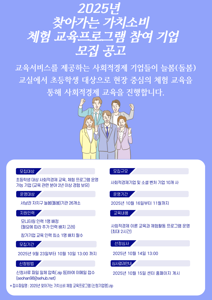 [공고] 2025년 찾아가는 가치소비 체험 교육프로그램 참여기업 모집(~10. 10(금) 13:00)