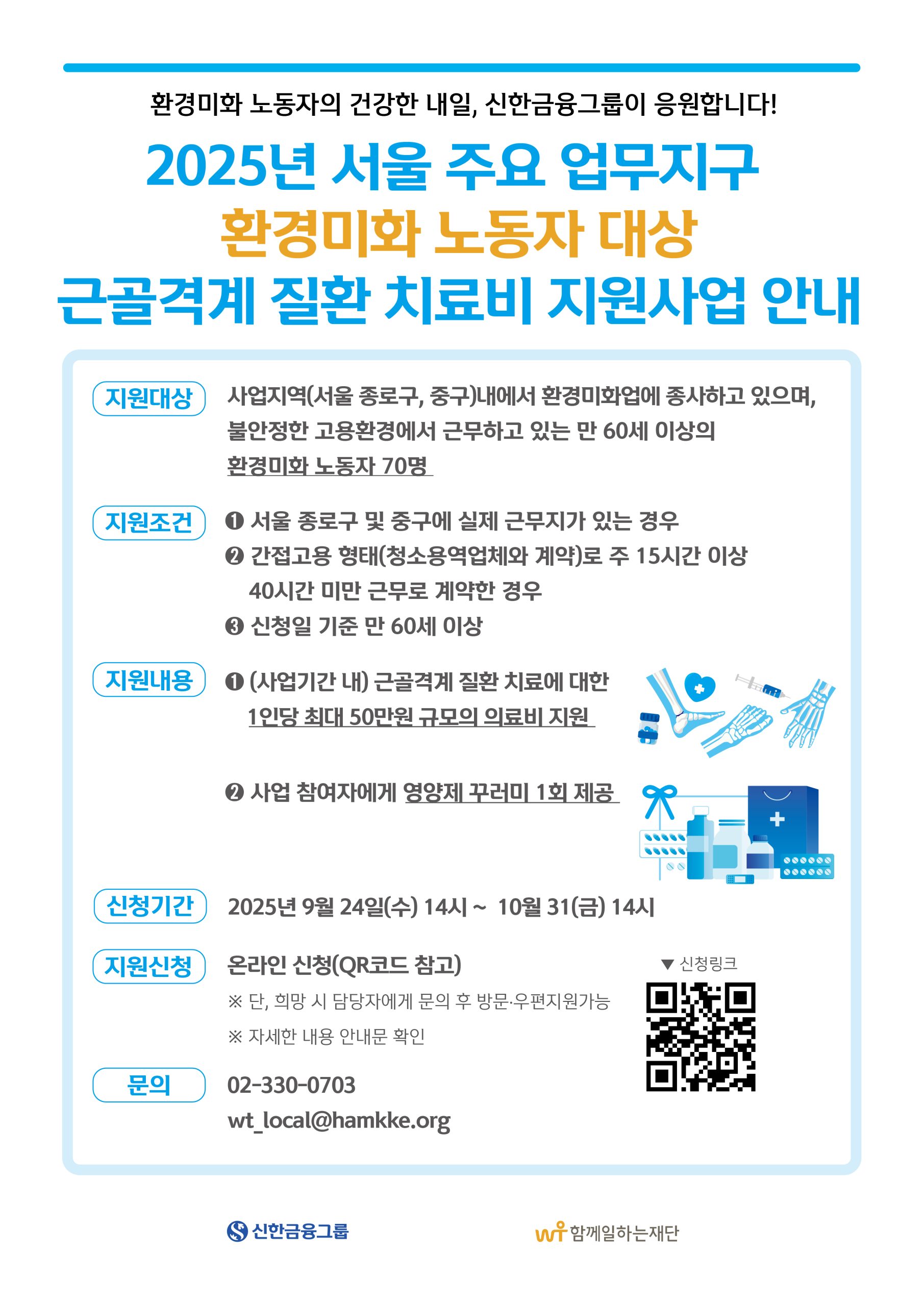 2025년 서울 주요 업무지구 환경미화 노동자 근골격계 치료비 지원사업