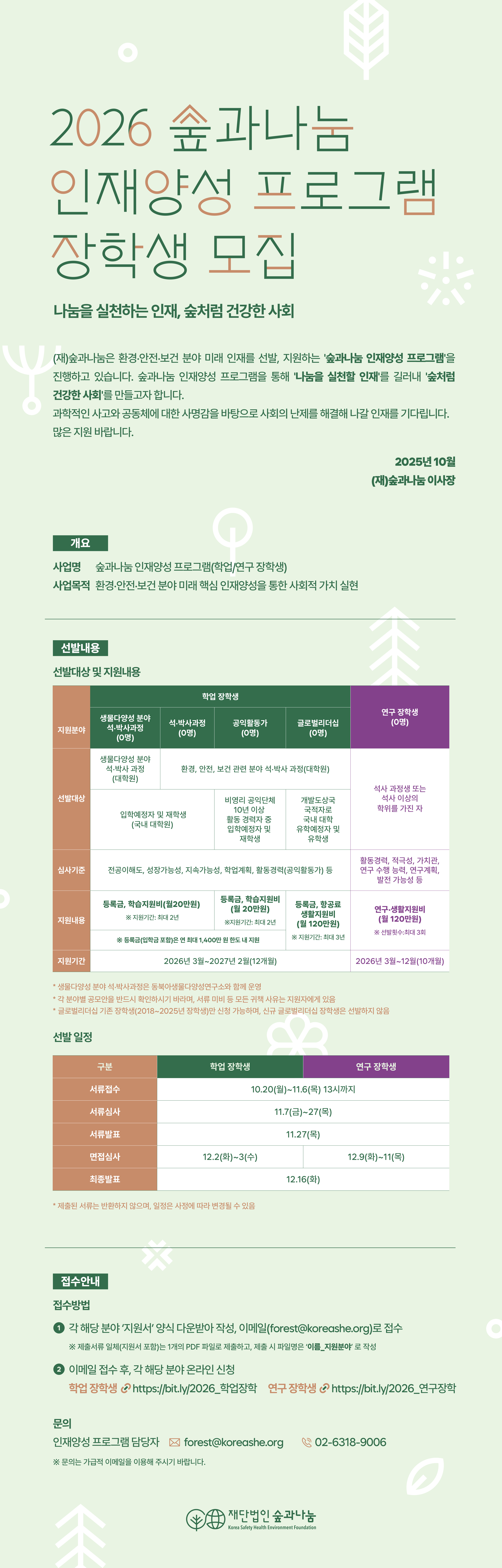 숲과나눔 | 2026 인재양성 프로그램 모집 (~11/6 13시까지)