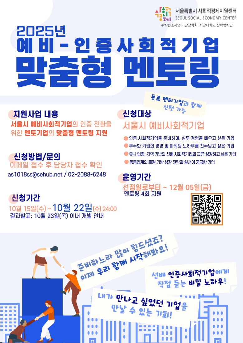 [재공고] 2025년 예비-인증사회적기업 맞춤형 멘토링 지원사업 참여기업 모집 공고