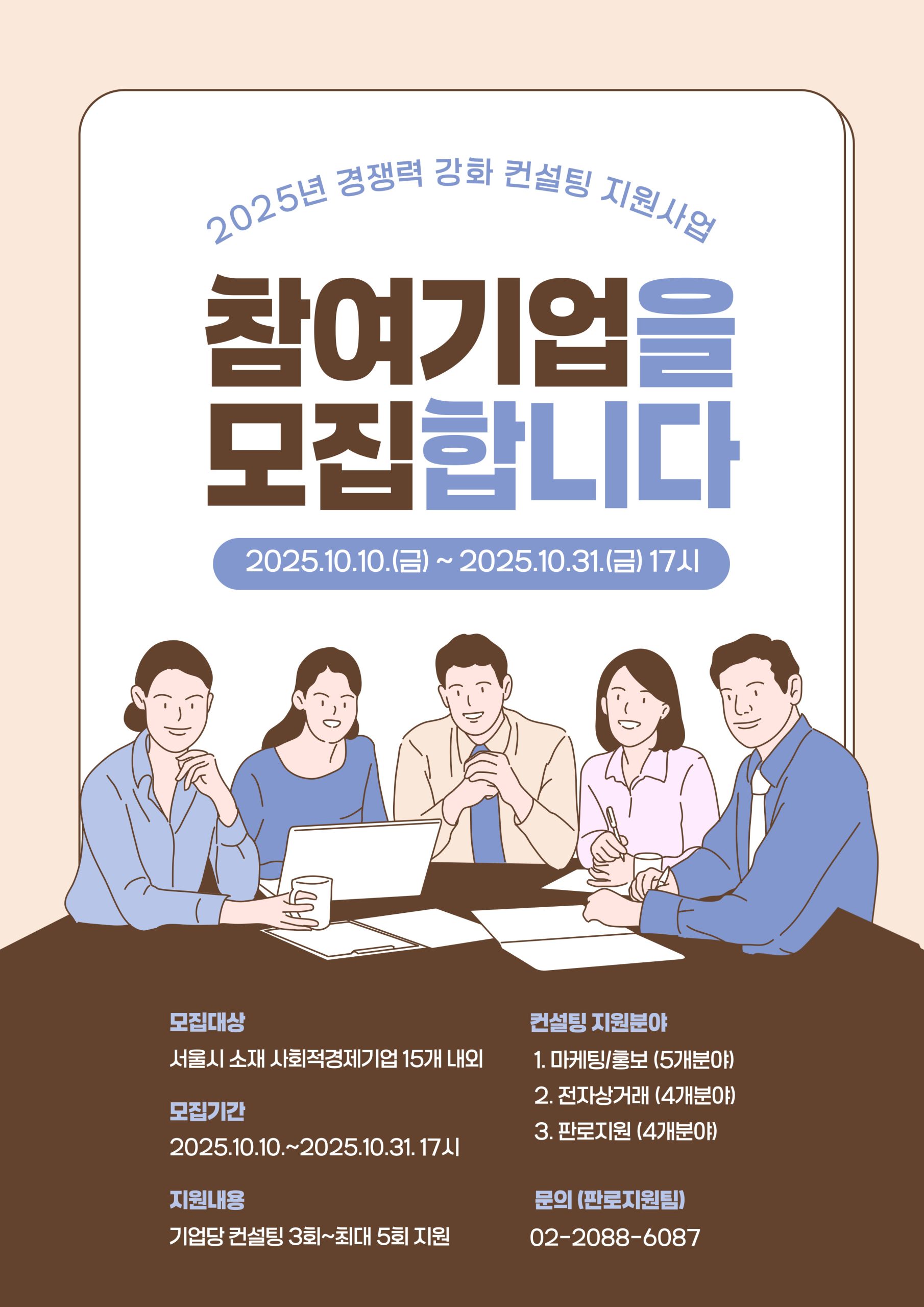 [연장 공고] 2025년 경쟁력 강화 컨설팅 지원사업 참여기업 모집(~10/31(금) 17시)