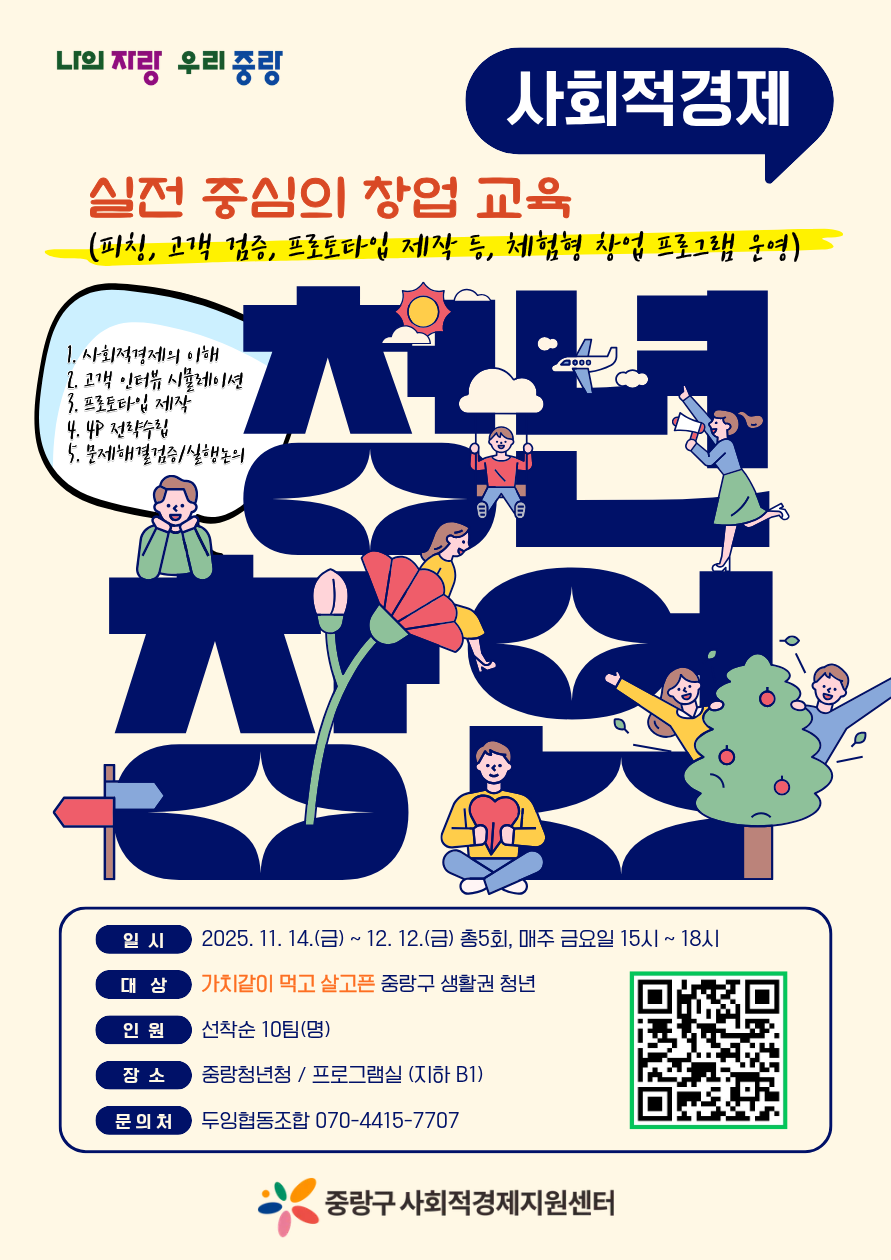 [모집] 중랑구 2025 사회적경제 청년 창업 아카데미 참여자 모집(~11/10,월)