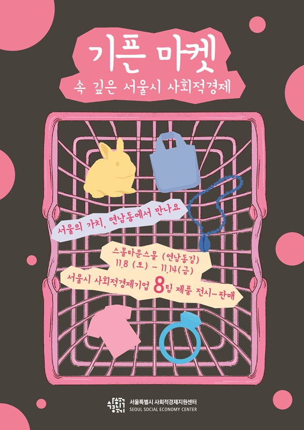 서울시 사회적경제지원센터(미담장학회·서강대 산학협력단 수탁, 이하 센터)는 11월 8일부터 14일까지 일주일 간 연남동 복합문화공간 ‘스몰타운스몰’에서 사회적경제기업과 소셜벤처가 참여하는 팝업스토어 ‘기픈 마켓’을 운영한다.