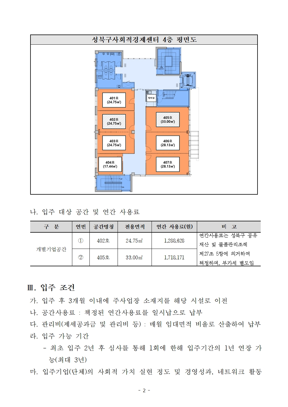 사회적경제 공지 성북구사회적경제센터 입주기업(단체) 공개모집 재공고(~12.15.) 2025-11-19 조회 : 106댓글 : 0 주최/주관 : 성북구사회적경제센터 문의 전화 : 02-927-9501 문의 메일 : sbmase3@gmail.com unnamed-file.pdf제출서류.hwp 첨부파일 unnamed-file (107 kB)제출서류 (55 kB) unnamed-file 제출서류 < > 인쇄 목록 수정 댓글이 닫혀있습니다.