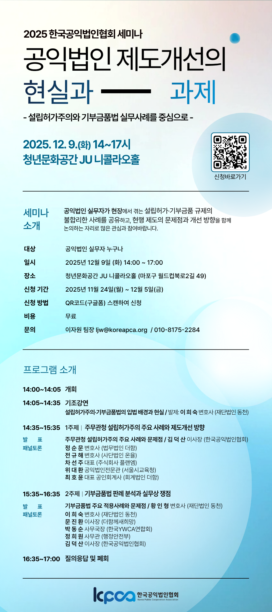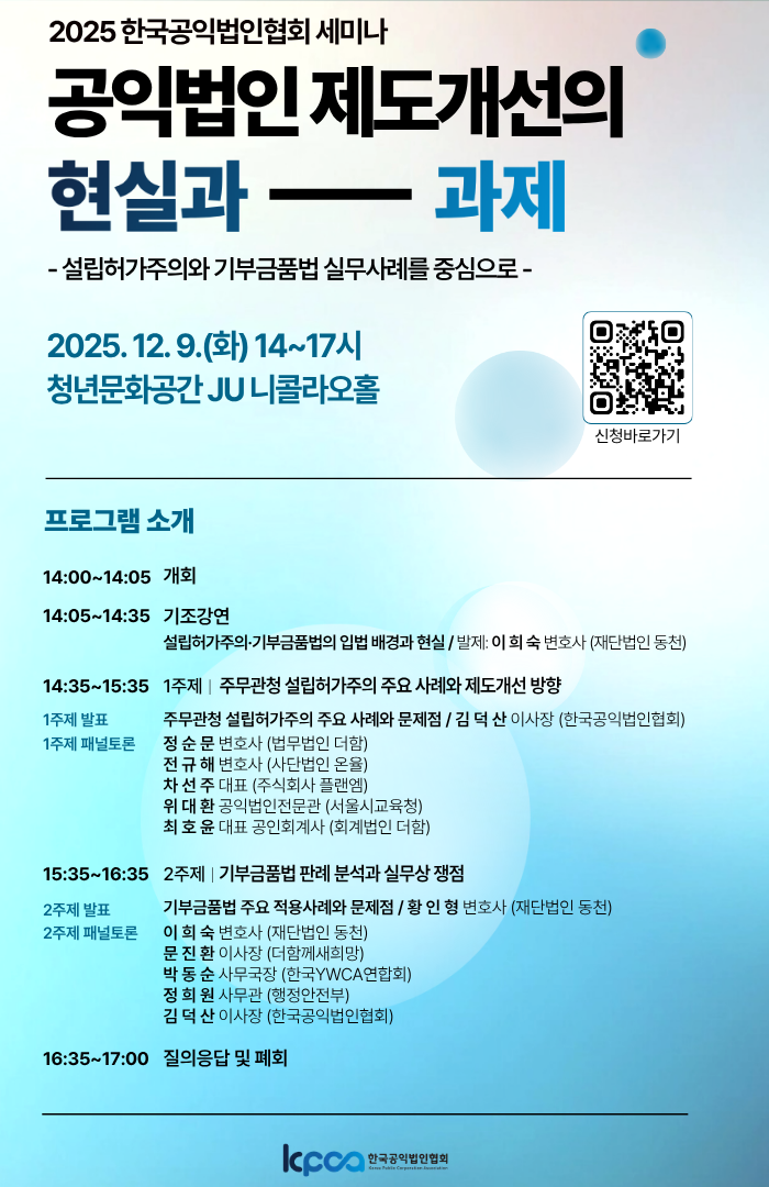 [한국공익법인협회] 2025 한국공익법인협회 세미나 ‘공익법인 제도개선의 현실과 과제’ 참여 안내