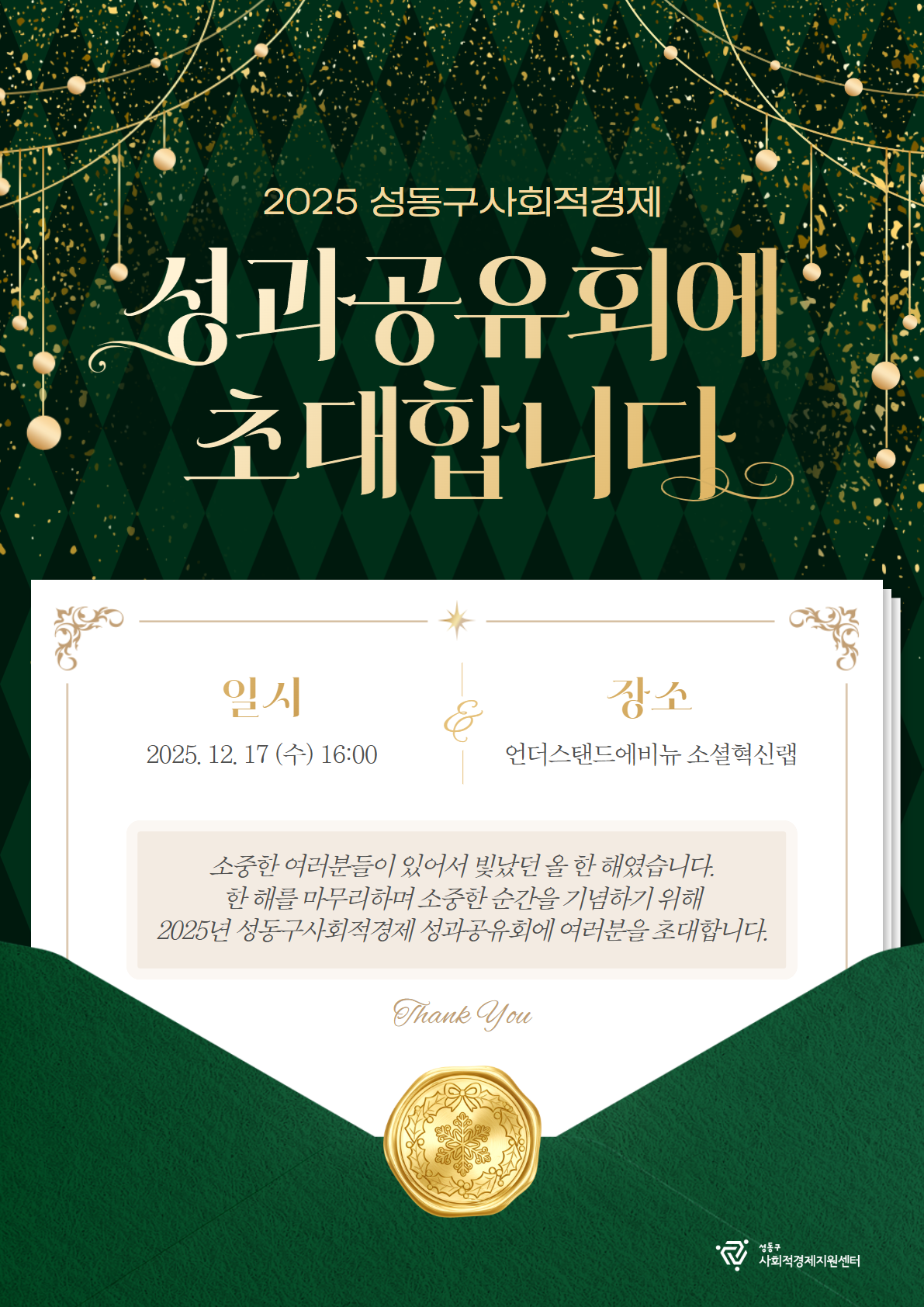 [행사] 〈2025년 성동구사회적경제 성과공유회〉 여러분을 초대합니다! (12/17 (수) 16:00 ~ 18:00)