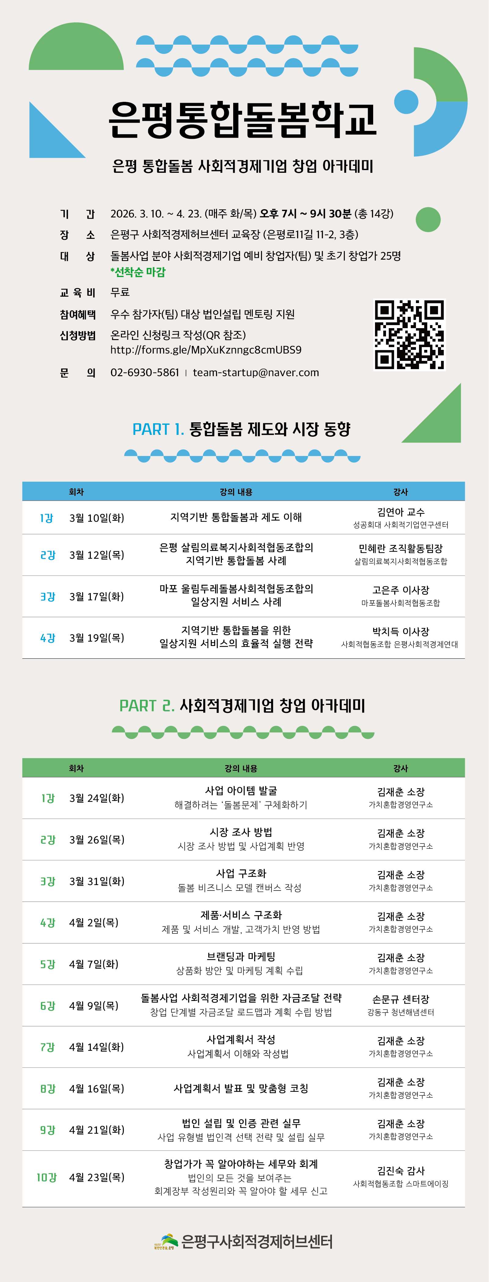 “은평 통합돌봄 사회적경제기업 창업 아카데미”