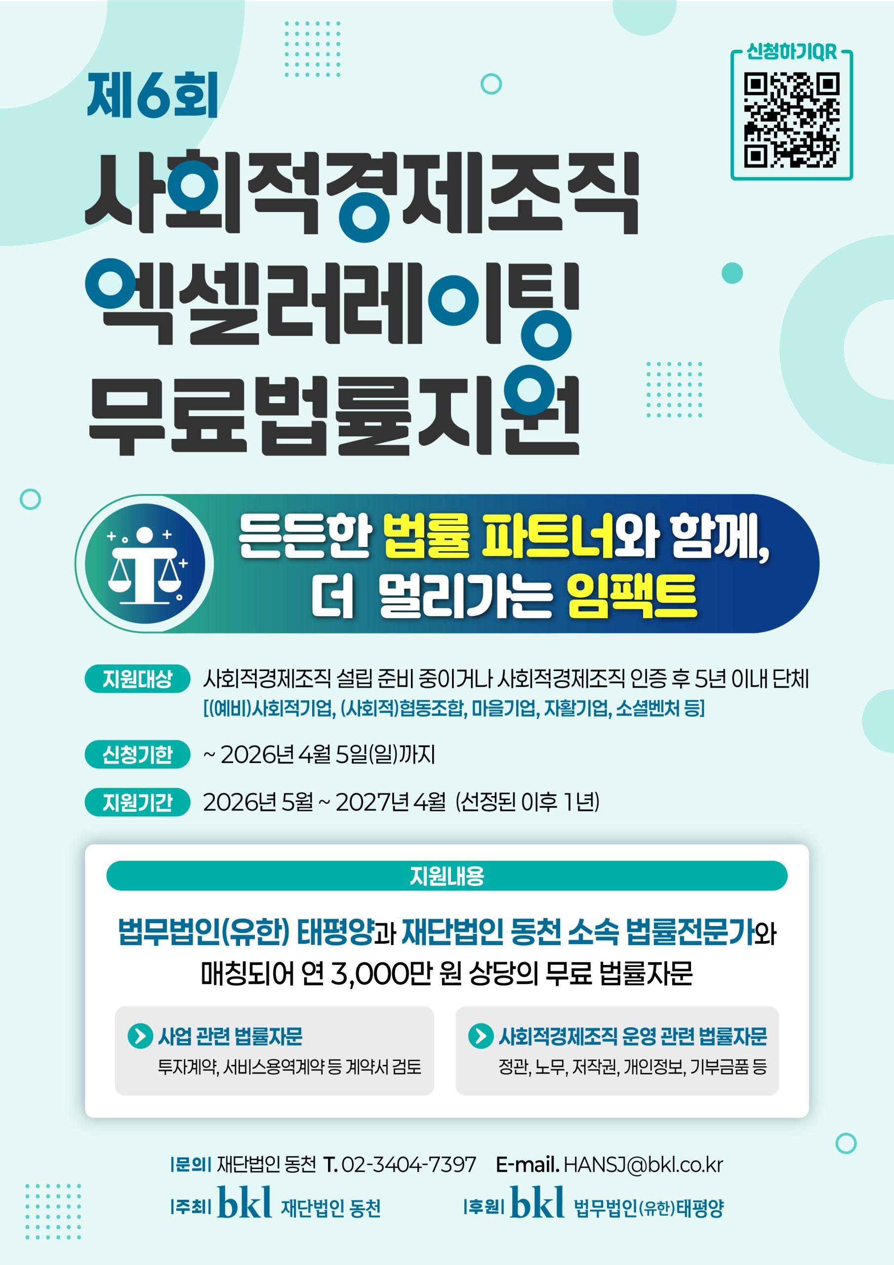 [안내] 제6회 사회적경제조직 엑셀러레이팅 무료법률지원단체 모집 (~4.5.)