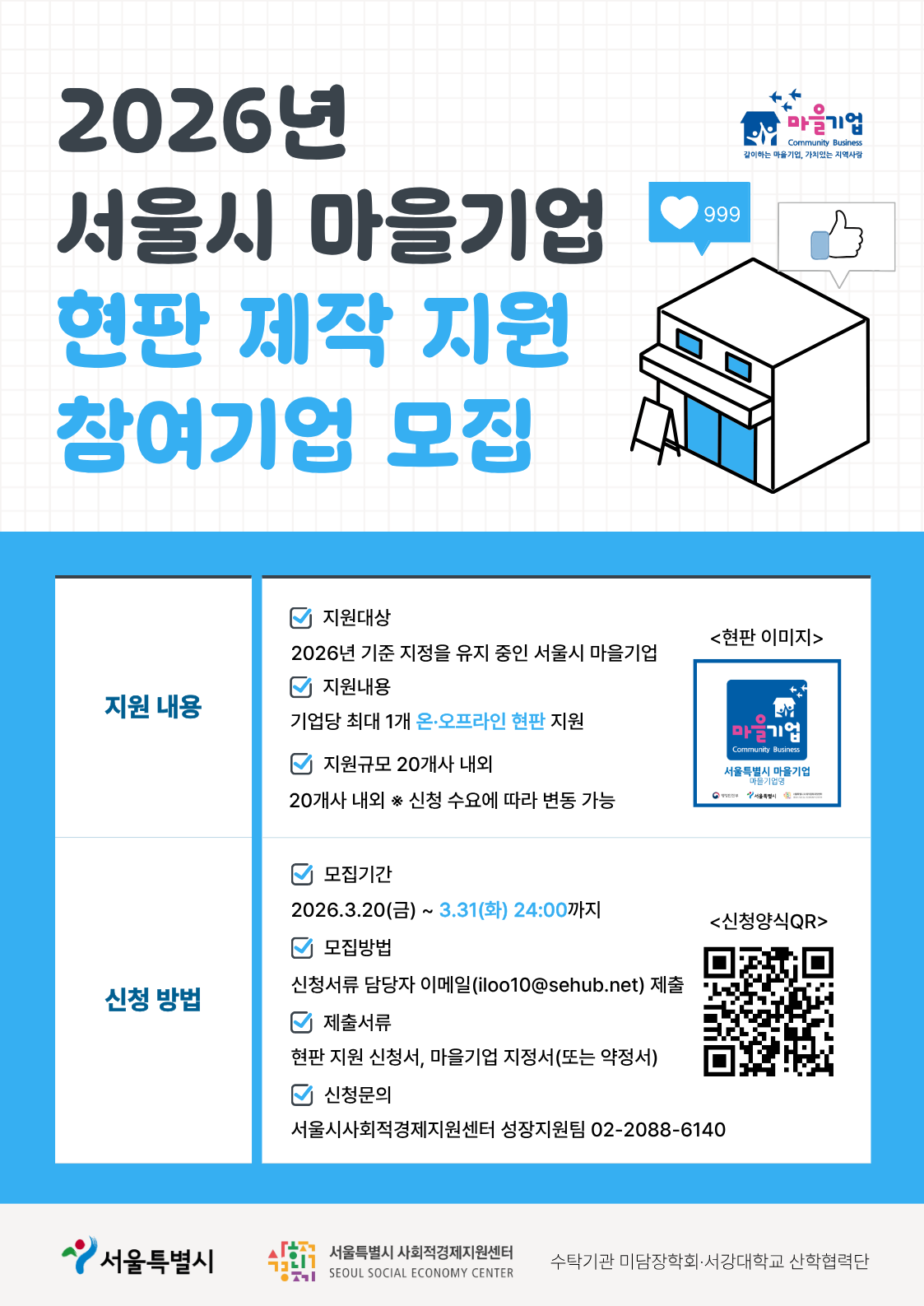 신청 문의: 성장지원팀 마을기업 담당 02-2088-6140