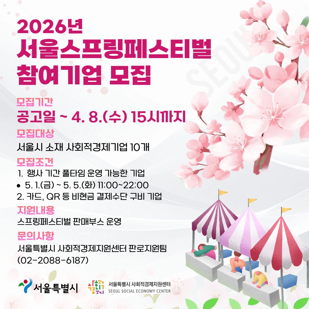 [공고] 2026년 서울스프링페스티벌 참여기업 모집 (~4/8(수) 15시)