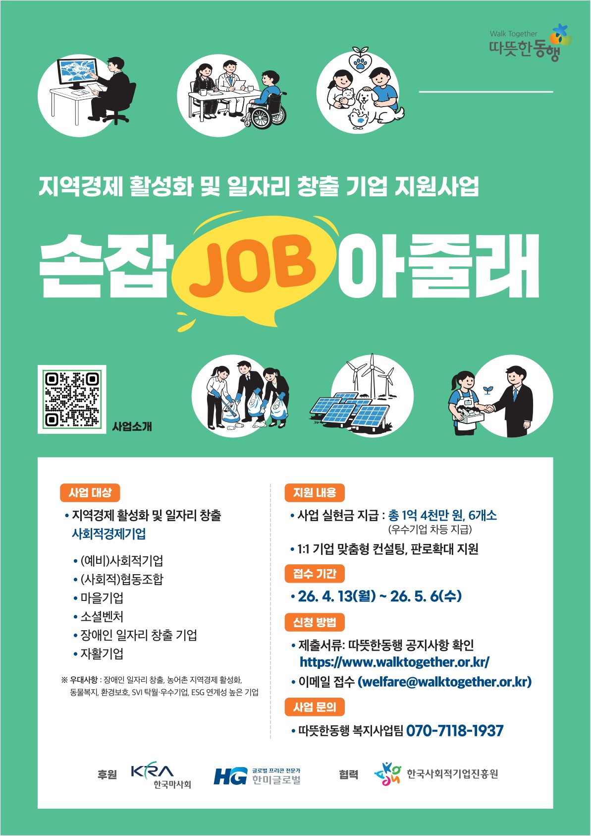 따뜻한동행은 한국마사회와 한미글로벌의 후원, 한국사회적기업진흥원의 협력으로