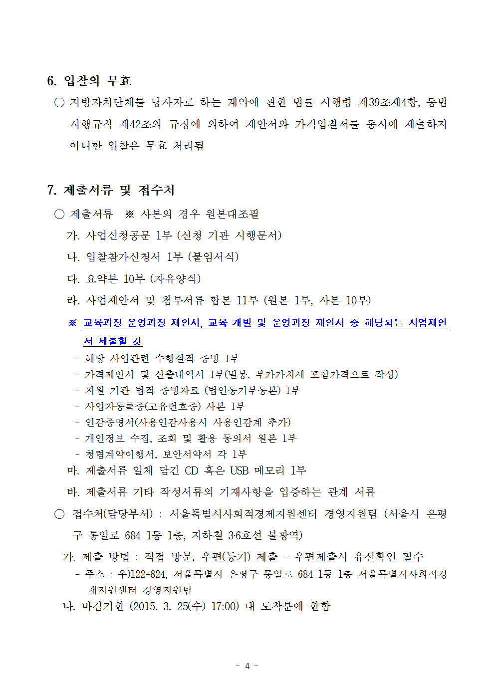 ∎ 공고번호 : 서울특별시사회적경제지원센터 제 2015-010호