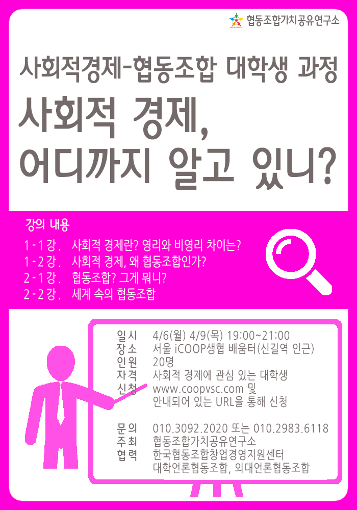 [안내] 사회적경제-협동조합 대학생 과정 “사회적 경제”(4.6, 4.9)