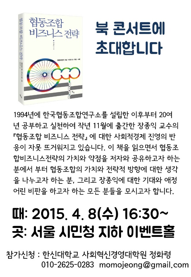 [안내] <협동조합 비즈니스 전략> 북콘서트에 여러분을 초대합니다(4.8)