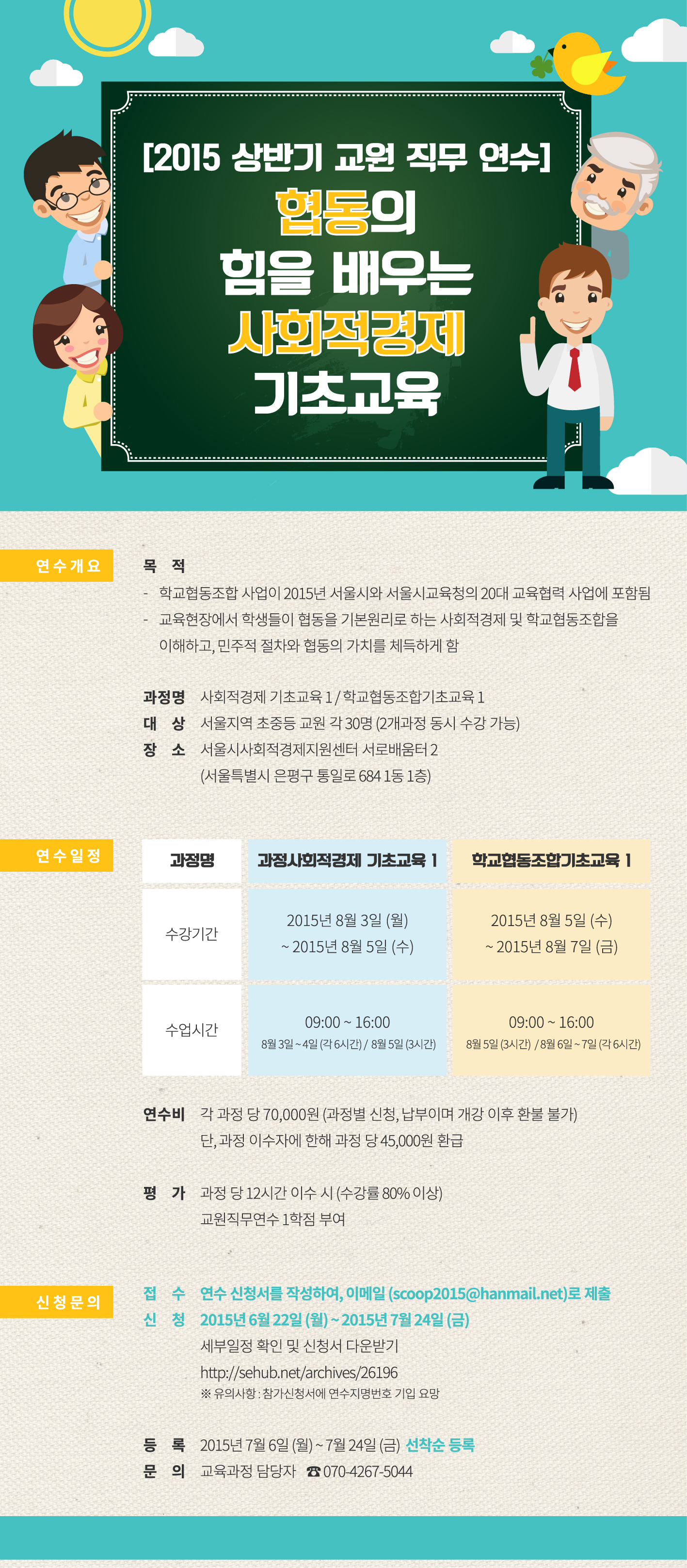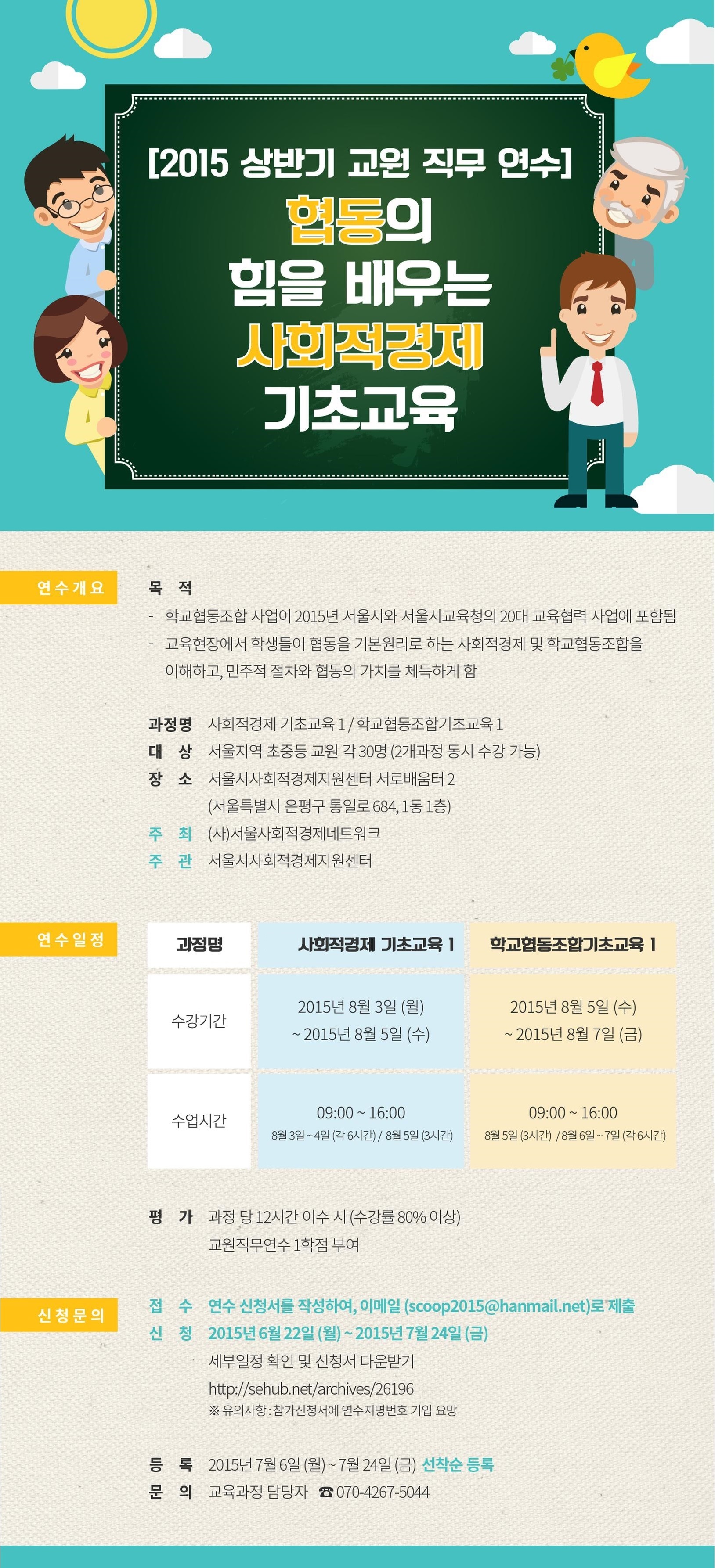 [공고] 2015 상반기 사회적경제 기초교육 교원 직무 연수 과정 안내(~7.24)
