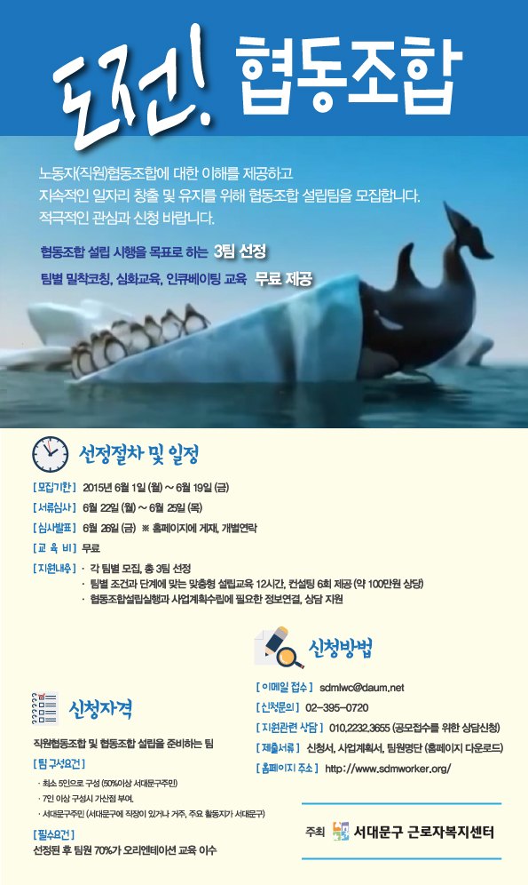 [안내] 서대문구 근로자복지센터- 노동자협동조합 팀 인큐베이팅 공모(~6.19)