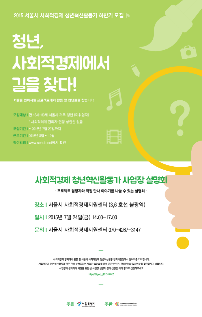 [안내] 사회적경제 청년혁신활동가 설명회(7.24) / 모집 마감 (~7.29)