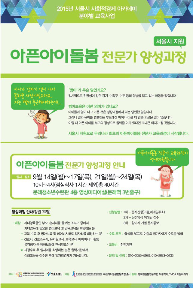[공지] 아픈아이돌봄 전문가 양성과정(9.14-17, 21-24)