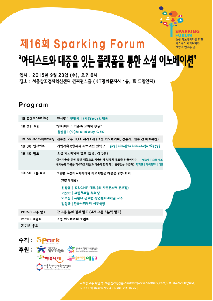 [안내] 제16회 Sparking Forum – 아티스트와 대중을 잇는 플랫폼을 통한 소셜 이노베이션