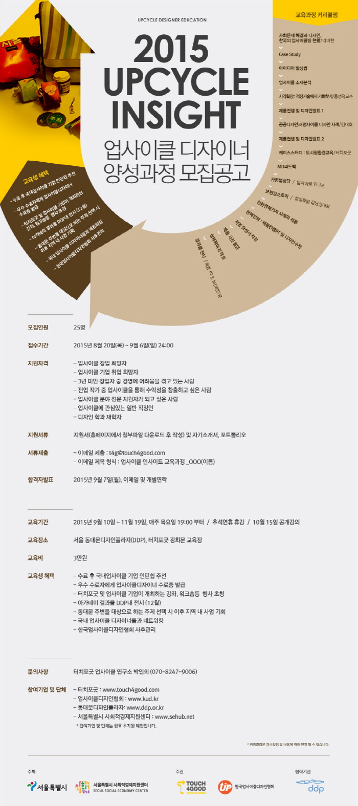 [안내] 업사이클 디자이너 양성과정 모집(8.20 ~ 9.6)
