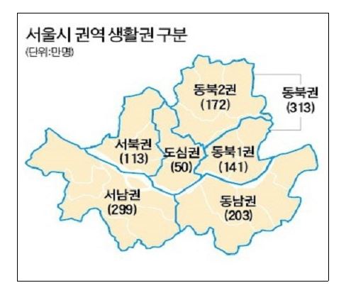 – 대상 : 서울시 5개 권역(서북, 서남, 동남, 동북, 도심)에 1개 권역을 선정 후 이에 포함되는 조직