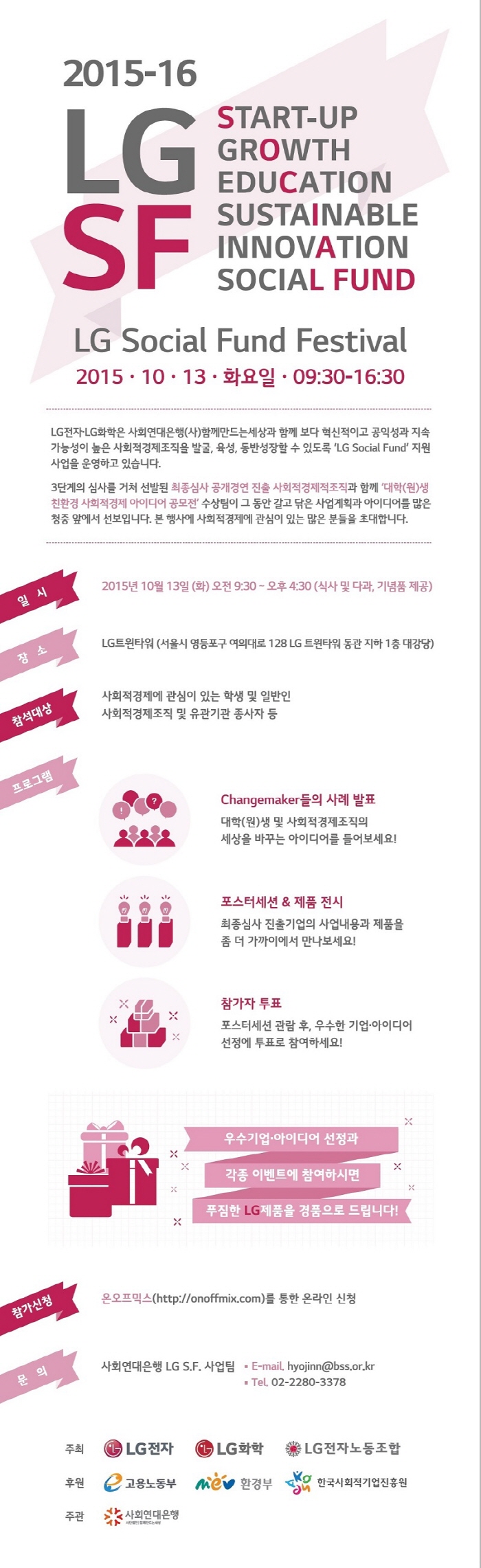 [안내] 2015 LG 친환경 사회적경제조직 공개경연 행사에 청중평가단으로 초대합니다! (10.13)