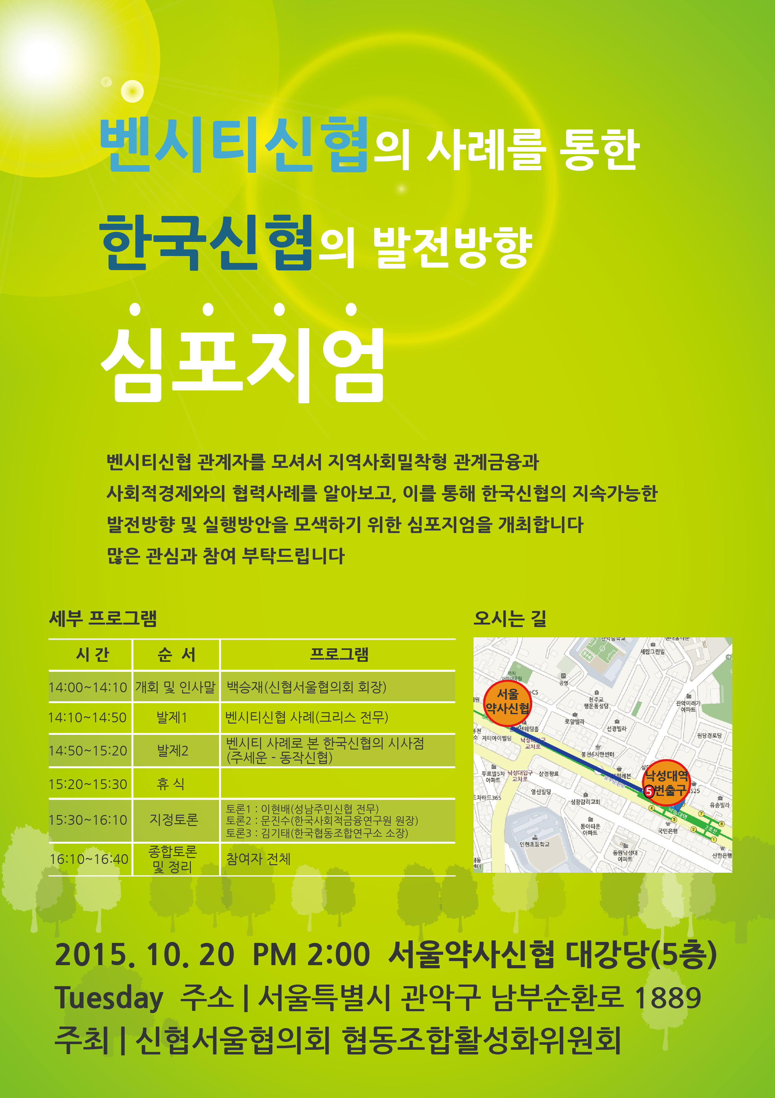 [안내] 벤시티신협의 사례를 통한 한국신협의 발전방향 심포지엄(10.20)