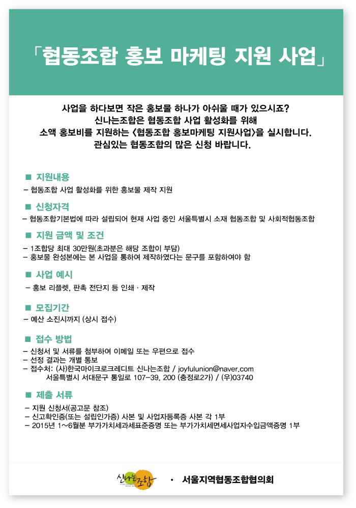 [안내] 협동조합 홍보 마케팅 지원 사업(상시 접수)