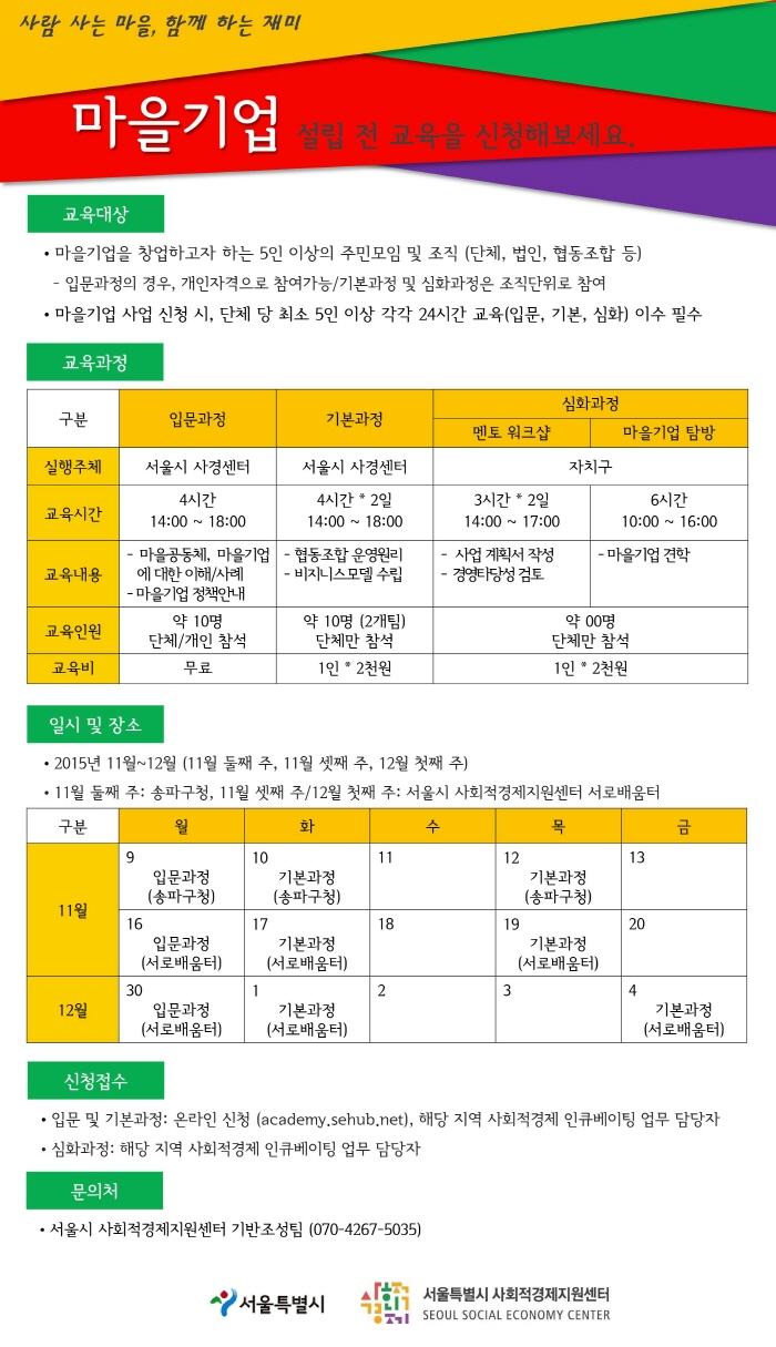 [안내] 마을기업 설립 전 교육 시행 (2015. 11 ~ 12)