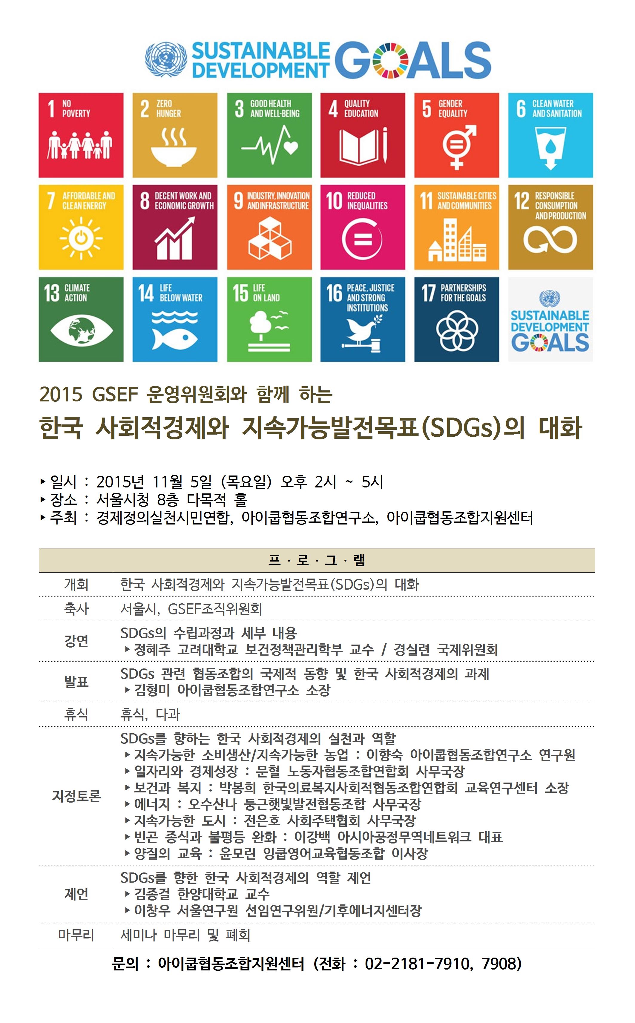알림마당 [안내] 2015 GSEF 운영위원회와 함께 하는 한국 사회적경제와 지속가능발전목표(SDGs)의 대화 (11.5) 2015-11-02 조회 : 1328댓글 : 0 주최/주관 : 관리자 모집일정 : 2015-11-05 ~ 2015-11-05 sz_1445564096.jpg sz_1445564096 GSEF SDGs 교육 농업 도시 보건 복지 불평등 빈곤 사회적경제 소비생산 에너지 일자리 지속가능 지속가능발전목표 < > 인쇄 목록 수정