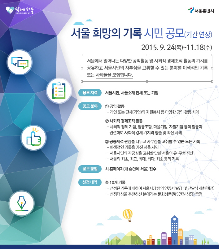 [안내] 서울 희망의 기록 시민 공모(사회적경제 조직 분야 등) (~11.18)