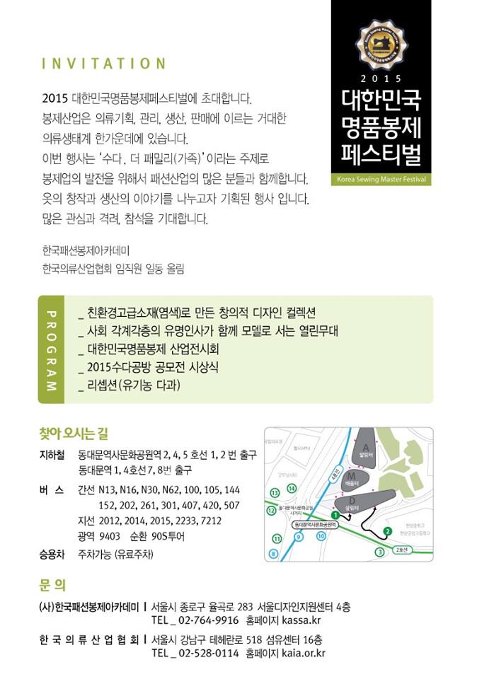 [안내] 2015 대한민국 명품봉제 페스티벌 “수다공방패션쇼” (11.17)