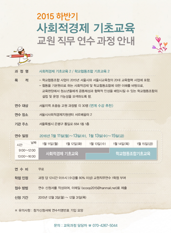 [안내] 2015 하반기 사회적경제 기초교육 교원 직무 연수 과정 (신청 ~12.31)