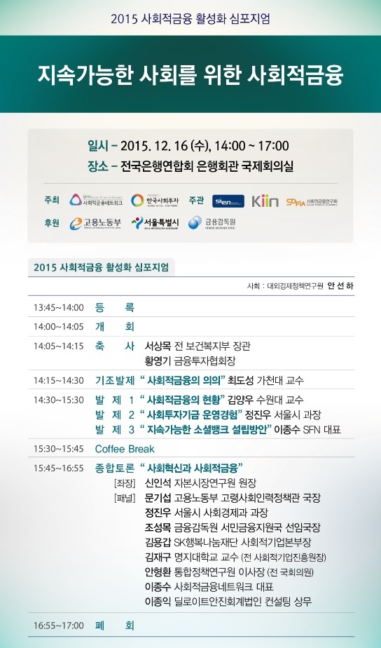 [안내] 2015 사회적금융 활성화 심포지엄 “지속가능한 사회를 위한 사회적금융” (12.16)