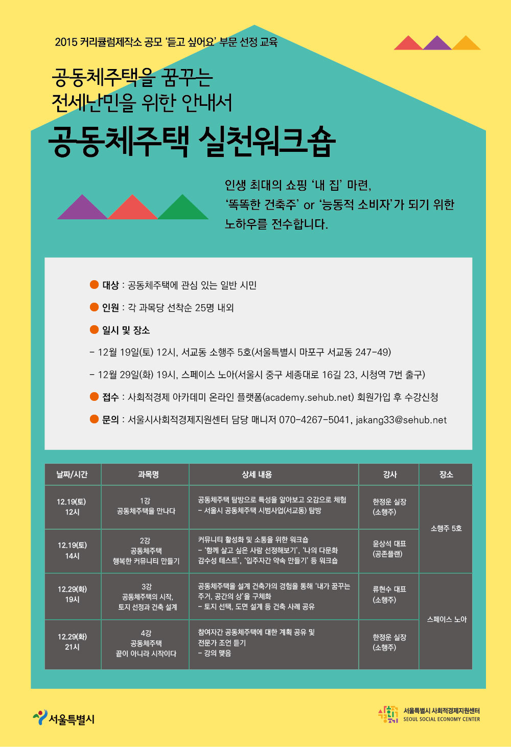 [안내] 커리큘럼제작소 공모 선정교육 – 공동체주택 실천워크숍(12.19-12.29)