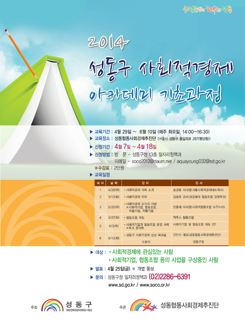 2014년 성동구 사회적경제 아카데미 수강생을 아래와 같이 모집 공고합니다.